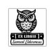 Un exsello de goma de Libris con una pequeña lechuza sentada y vigilando dos libros. Texto ex de Libris en la parte superior del libro con el nombre del personalizable en el libro inferior en escritura elegante.