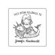 Este sello de goma para libros presenta a una niña leyendo a un dragón bebé con un nombre personalizado.
