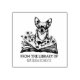 Este sello de goma de "De la biblioteca de" presenta un chihuahua con un libro floral y un nombre personalizado.