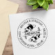Un elegante sello de dirección para una pareja con un simple ilustracion vectorial blanco y negro de un par de peces koi japoneses dando vueltas entre sí. El nombre de la familia está escrito en el ilustracion mientras que los nombres y la dirección están impresos a su alrededor. Tenga en cuenta que puede que necesite ajustar la información introducida agregando o eliminando algunos caracteres o espacios, para que el nombre y la dirección estén correctamente alineados.