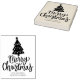 Este sello de goma de "Feliz Navidad" incluye un árbol de navidad, un mensaje y un nombre de familia personalizado.