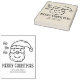 Este sello de goma de "Feliz Navidad" incluye a santa claus, un mensaje y un nombre de familia personalizado.