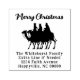 Los Navidades de la plaza escriben el sello de nombre y dirección con un tema cristiano. Una imagen masculina en el centro con "Feliz Navidad" en la parte superior. Incluya tres o cuatro líneas para el nombre y la dirección. Elija entre los muchos colores de tinta ofrecidos y marque la parte posterior de los sobres.