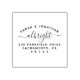 Un simple diseño tipográfico que presenta los primeros nombres de los recién casados en texto curvo sobre su apellido en letras a mano de guiones. Debajo, hay espacio para una dirección de casa u otros detalles de contacto. Este sello es perfecto para tarjetas de agradecimiento boda! Recuerde no borrar los caracteres primero y último del campo de plantilla de apellidos para mantener los giros caligráficos. Ver el enlace de la colección en esta página o visitar nuestra tienda para más diseños.