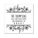 Hermoso sello de dirección floral con tu nombre y dirección en fuentes encantadoras rodeadas de flores dibujadas a mano y vegetación.