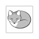 Dibujo estilizado de tinta de un zorro dormido curvado.
