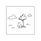 Funny Cartoon Dog Under Tree Line Drawing rubber stamp