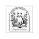 Este sello de goma "De la biblioteca de" presenta un gato libresco con flores y un nombre personalizado.