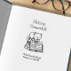 Sello De Caucho Gato lindo encima de una dirección de pila de libr