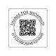 Sello de código QR con texto curvo que dice gracias por comprar y tu nombre de negocio o cuenta de medios sociales. Marca de código QR personalizado personalizada con el texto.