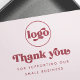 Sello de goma con el logo de su personalizado y el texto "Gracias" en negrita, estilo retro, y texto de personalizable debajo "por apoyar a nuestra pequeña empresa".