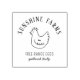 Un sencillo y moderno sello de goma de hueso de granja con una linda gallina dibujada a mano. Personalice su nombre de negocio y los detalles del producto.