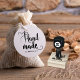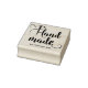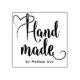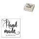 Add a personal touch to your creations with this elegant 'Handmade by' rubber stamp. Featuring a beautiful script font for 'Handmade' and a delicate heart with a needle incorporated into the flourish, this stamp is perfect for crafters and small business owners. The name is subtly included in a clean font below, allowing you to brand your unique items. This design offers a classic and versatile look that will complement any packaging or project. Use it on cards, gift tags, or product packaging to showcase the care and artistry that goes into your work.