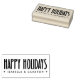 Winter holiday rubber ink stamp featuring the text "Happy Holidays" in a retro font with your custom name or text below.