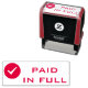 El diseño de este sello de goma incluye los mensajes "Importe total pagado", junto con un icono decorativo de marca de verificación y una línea en la que se puede escribir una fecha de pago. Podría utilizarse para marcar que una factura o factura se ha pagado íntegramente.