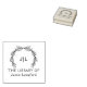 Este elegante estampado de libros de la biblioteca incluye una rústica corona botánica dibujada a mano con sus iniciales en letras clásicas. Debajo está la "biblioteca de" texto seguido de su nombre en la fuente de funda inferior. Crea tu propio personalizado "desde la biblioteca de" estampador haciendo clic en el botón "Personalizar".