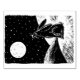 Una liebre sentada en una colina, mirando a la luna llena, en la nieve.