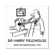 Médica está usando su estetoscopio en los pies de un paciente. Divertido personalizado a personalizar con su elección de nombre e información de contacto. Ideal para sellar sus detalles en cartas, sobres, tarjetas de cita, recetas, folletos, etc.