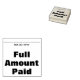 El diseño de este sello de goma incluye el mensaje "Importe total pagado" y una línea en la que se puede escribir una fecha de pago. Tal vez podría utilizarse para indicar que se ha pagado íntegramente una factura o factura.