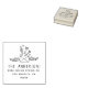 Modern Envelope Custom Name Family Return Address rubber stamp is perfect for bringing good news and wishes to your family and friends! It features a cute hand-drawn envelope with wings. There are hearts, a butterfly, and key, and a musical key flying out of it. Below is your family name in a casual font and return address in simple typography. Personalize it with your own details by clicking on the ´´Personalize´´ button.