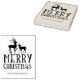 Este sello de goma de "Feliz Navidad" incluye un ciervo, un mensaje y un nombre de familia personalizado.