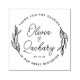 Sello de goma circular moderno y rústico con estilo que presenta vegetación en forma circular con letras curvas y nombres en guión en el medio con una fecha.