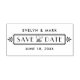 Anunciar a su boda con estilo con esta inspiración Art Deco vintage guardar el sello de fecha que incluye un diseño de marco decorativo, fuentes de estilo vintage y texto personalizado que se puede personalizar con los nombres de novias y novios y la fecha boda.