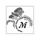 Un ilustracion de un caprichoso saltamontes encapuchado con el pelo facial. El insecto está encaramado sobre la hierba. La hierba se riza en forma de círculo hacer un marco alrededor de un M. M es corto para monograma y puede ser personalizado para su propia inicial.