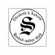 El diseño presenta un monograma de apellido dentro del círculo. Diseñado para coordinar con la "Elegante suite Boda católica violeta".