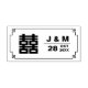 El sello de goma muestra al personaje chino "囍 doble felicidad" con un simple y moderno monograma personalizado de los nombres de la novia y del novio y fecha de boda. El significado literal de 喜 (Felicidad) es alegría, mientras que 囍 (doble felicidad) son el doble carácter chino de alegría, un símbolo de celebración del matrimonio. El motivo de doble felicidad aparece a menudo en objetos decorativos asociados con bodas.