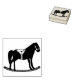 Esta impresionante estampilla de arte de madera para Navidades muestra una imagen de arte digital de un lindo caballo de rock de estilo escandinavo. El caballo es rojo con un mané rojo oscuro, cola y pezuñas. El caballo amistoso sonríe. Tiene una silla blanca y riendas con motivos folclóricos escandinavos bonitos en la silla, incluyendo el sol, la luna y las estrellas y los corazones y flores. La base del mecedor es roja y está cubierta de hojas blancas de bonito. El diseño se inspiró en el caballo Dala sueco.