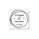 Un sello de goma moderno que presenta círculo de garabato y tipografía simple, caligrafía moderna utilizada con sus nombres y fecha.