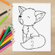 Pequeño zorro lindo con orejas grandes y cola espesa está bostezando con sueño. Adecuado para colorear.