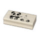 Un par de lindos pandas personalizados. El panda izquierdo sostiene un palo de bambú mirando al panda derecho que se ha quedado dormido.