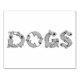 PERROS espeleados con letras divertidas para perros - Muchos perros adorables, sonrientes, tontos, con dibujos animados, que parecen estar haciendo yoga, mientras escriben la palabra "PERROS", con sus cuerpos. Derechos reservados © Angi Laframboise. Divertidos y lindos regalos de perro para los amantes del perro.