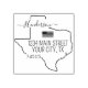 Diseñe un sello de goma rústico personalizado para el domicilio de regreso de su familia en Texas. Este sello único muestra el Estado de Texas y la tipografía encantadora, lo que le permite agregar su propio nombre de familia (o nombre de negocio) y dirección.
