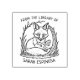 Este sello de goma "De la Biblioteca de" presenta un zorro leyendo con un nombre personalizado.