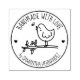 Este sello de goma "hecho a mano con amor" presenta un pájaro lindo con nombre personalizado.