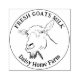 Sencilla etiqueta de producto de la granja lechera en blanco y negro con detalles comerciales. Fácil de personalizar la escritura a mano con tipografía moderna usando la plantilla. Dibujo minimalista de una linea de cabra original único obra de la artista Catherine Sweetman