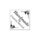 Este sello personalizado tiene unos bordes decorativos elegantes en las esquinas superior derecha e inferior, ya que el sello está impreso en forma de diamante y no de cuadrado. En el centro del sello aparece la palabra "hecho a mano" impresa en un elegante tipo de letra, seguido de un nombre de ejemplo. El nombre del sello se puede personalizar para incluir su propio nombre, nombre comercial o de empresa, u otro mensaje o presupuesto personalizado.
