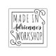 Marca tus regalos de Navidad hechos a mano con tu propio sello de goma "hecho en taller" personalizado. El diseño presenta un diseño de marco de borde decorativo con "hecho en taller" en un estilo dibujado a mano y personalizado con nombre para un aspecto realmente personalizado. Puede realizar el personalizar del tamaño del texto, la fuente y el diseño de su propia preferencia de diseño personal.