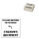 SELLO DE CAUCHO "¡POR FAVOR, VUELVA A ENVIAR!", "DESCONOCIDO RECEP