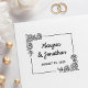 Sello de boda de personalizable con elegante ilustracion floral de ramo de rosa.