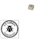 Un diseño redondo de sellos de caucho Ex Libris con un marco de borde audaz y punteado con un motivo de pájaro.