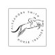 Plantilla de sello de caucho en color negro ideal para el cuidado de caballos, entrenamiento de caballos, servicios veterinarios. Este elegante diseño muestra el salto de caballo y su nombre y es completamente personalizable.