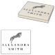 Plantilla de sello de caucho ideal para el cuidado de caballos, entrenamiento de caballos, servicios veterinarios. Este elegante diseño muestra el salto de caballo, con su nombre de negocio.