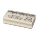 Christmas return or mailing address rubber stamp for letters from Santa or to Santa Claus. Hand drawn vintage Santa holding he has a big smile on his face, and is wearing glasses. Santa's address lettering is done in a snow font.