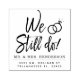 Hágale saber al mundo entero sobre tu reciente matrimonio con este único sello temático en blanco y negro. Incluye las palabras "Todavía hacemos" en el tipo de letra del guión. Debajo hay un punto para los detalles de su dirección.