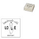 Este sencillo sello de goma "hecho a mano con amor" incluye una mano haciendo una carta y un nombre personalizado.