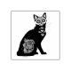 Un gato negro con el día del cráneo de azúcar muerto maquillada en un fondo de verde azulado